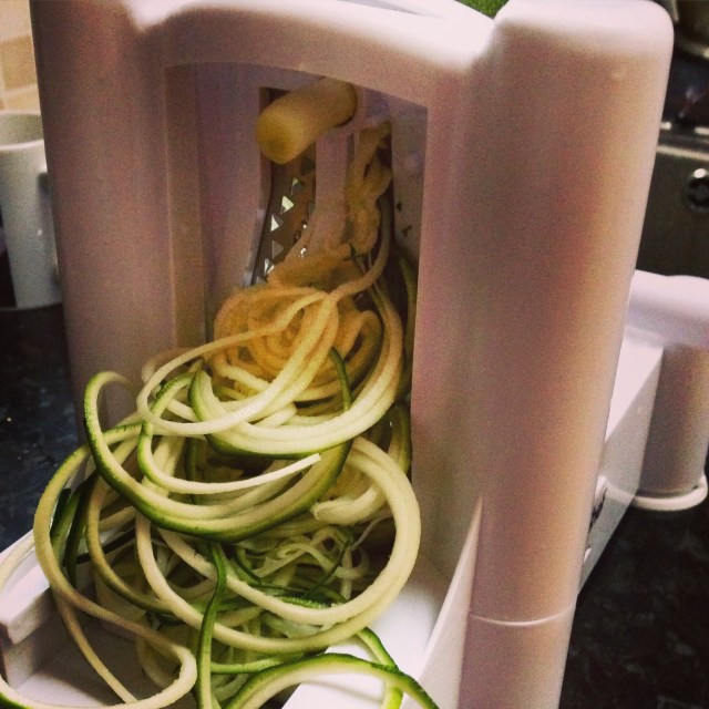 To make this recipe you’ll need a spiralizer – one of the worlds greatest inventions!! It’s so useful, not just for courgetti, but for making vegetable crisps and also jazzing up boring salads. If you haven’t got one yet I’d wholeheartedly reccomend it.